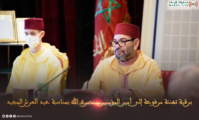 برقية تهنئة مرفوعة إلى أمير المؤمنين نصره الله بمناسبة عيد العرش المجيد