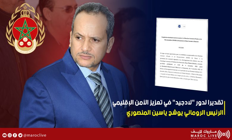 تقديرا لدور “لادجيد” في تعزيز الأمن الإقليمي.. الرئيس الروماني يوشح ياسين المنصوري بوسام “نجمة رومانيا” من درجة ضابط كبير