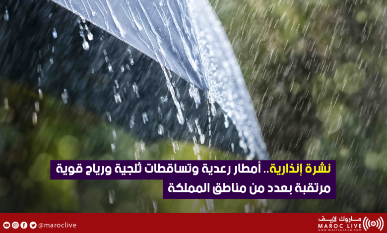 نشرة إنذارية .. أمطار رعدية وتساقطات ثلجية ورياح قوية مرتقبة بعدد من مناطق المملكة