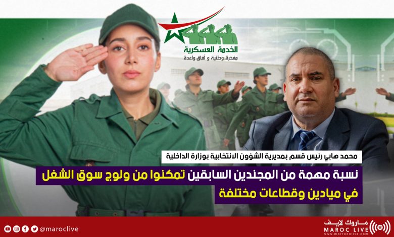أكد محمد هابي رئيس قسم بمديرية الشؤون الانتخابية بوزارة الداخلية أن نسبة مهمة من المجندين الذين أنهوا مدة الخدمة العسكرية برسم الأفواج السابقة، تمكنوا من ولوج سوق الشغل في ميادين وقطاعات مختلفة.