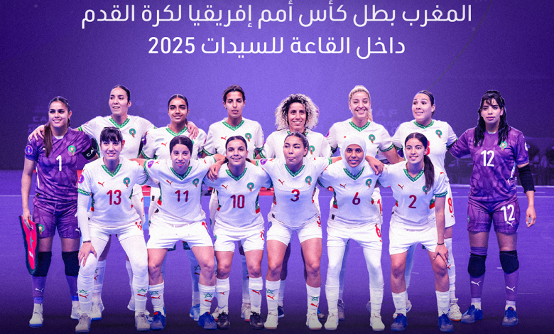 جلالة الملك يهنئ أعضاء المنتخب الوطني لكرة القدم داخل القاعة للسیدات بمناسبة فوزه بكأس إفریقیا للأمم 2025