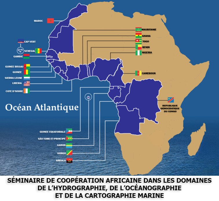 ويعرف هذا الحدث الدولي، الذي افتتحت أشغاله بمداخلات للوزير المنتدب لدى رئيس الحكومة المكلف بإدارة الدفاع الوطني، ووزير التجهيز والماء، ووزير التعليم العالي والبحث العلمي والابتكار، ووزير النقل واللوجيستيك، وكاتبة الدولة المكلفة بالصيد البحري، والكونتر أميرال مفتش البحرية الملكية، مشاركة ممثلي بلدان إفريقية أعضاء باللجنة الهيدروغرافية للمحيط الأطلسي الشرقي، ومدير المنظمة الهيدروغرافية الدولية، ومدير المركز الإقليمي لتوزيع الخرائط الإلكترونية للنرويج، وممثلي الخدمة الهيدروغرافية والمحيطية للبحرية الفرنسية.