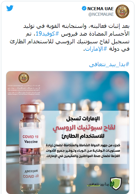 وفي المنطقة العربية، أقرت اللقاح الروسي إضافة إلى الإمارات، الجزائر، وفلسطين، فيما تتواصل التجارب السريرية على اللقاح في مصر التي أعربت عن اهتمامها بإنتاج لقاح “سبوتنيك V” على أراضيها.