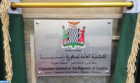 العيون – افتتحت جمهورية زامبيا، اليوم الثلاثاء، قنصلية عامة لها بالعيون ، تعد ثامن تمثيلية دبلوماسية يتم تدشينها بعاصمة الصحراء المغربية العيون ، خلال مدة لا تتجاوز السنة .