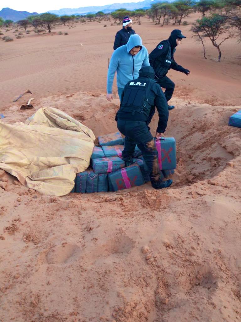 وذكر بلاغ للمديرية العامة للأمن الوطني أن التدخلات الميدانية وعمليات التفتيش، المنجزة بتنسيق وثيق مع سرية الدرك الملكي، بأماكن متفرقة بالجماعة القروية “فاصك” التي تبعد بحوالي 25 كيلومتر جنوبا في اتجاه مدينة أسا، أسفرت عن ضبط كمية المخدرات المحجوزرة ملفوفة في 337 رزمة من مخدر الشيرا ومطمورة تحت الرمال، وذلك على أساس خفرها لاحقا في إطار عمليات التهريب الدولي للمخدرات.