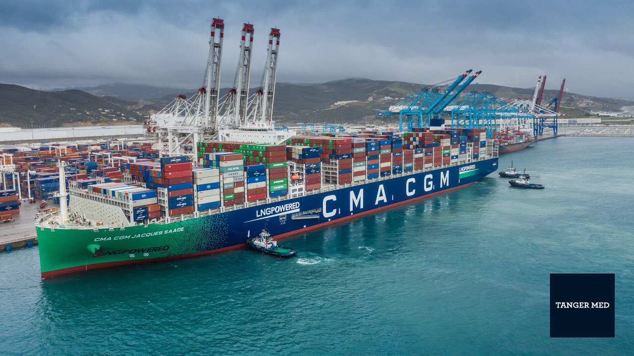 رست باخرة الشحن “سي إم أ – سي جي إم جاك سعادة”، التي تعتبر أكبر باخرة شحن حاويات في العالم تعمل بالغاز الطبيعي المسال، يوم أمس الاثنين بالمركب المينائي طنجة المتوسط، في أول رسو لها بالمملكة المغربية.