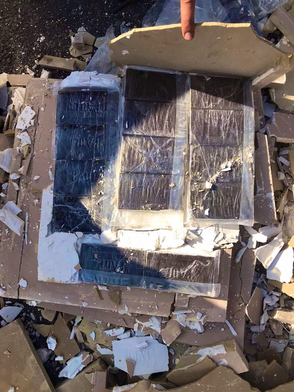 تجارية صوب إحدى دول إفريقيا جنوب الصحراء أسفرت عن ضبط شحنة المخدرات مخبأة داخل تجاويف معدة في مادة الرخام.