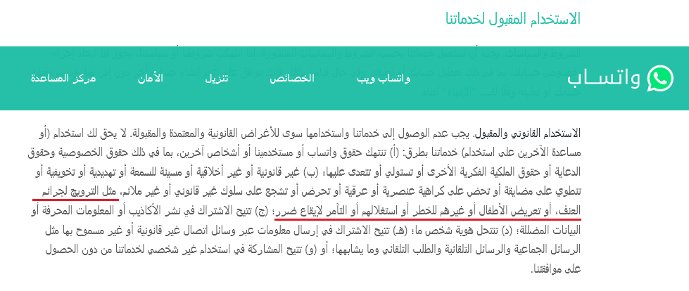و يفرض “واتساب” حظرا على الحسابات لأسباب مختلفة حسب شروط الخدمة وسياسة الخصوصية، من بينها لجوء البعض إلى إضافة الرقم إلى مجموعات مشبوهة تحمل أسماء مشبوهة حول محتوى إجرامي أو عنيف يستغل الأطفال، أو تعرض الرقم والحساب للتبليغ، أو في حال استخدام أحد التطبيقات غير الرسمية والزائفة من “واتساب”، أو في حال وصول روابط محظورة.