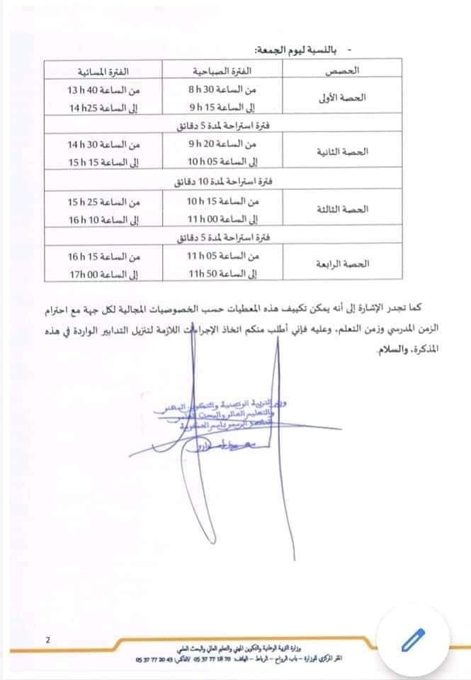 وأشارت المذكرة الوزارية أيضا إلى أنه يمكن تكييف هذه الحصص مع خصوصيات الدراسة بالوسط القروي.