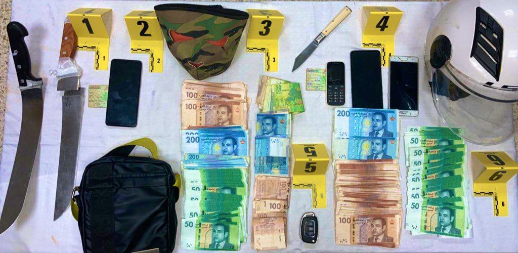 الأبحاث والتحريات المكثفة التي باشرتها المصالح الأمنية، مكنت من تحديد هوية المشتبه فيهما وتوقيفهما مساء اليوم بمنطقة طنجة البالية، بينما أسفرت عمليات التفتيش المنجزة بمنزلهما عن حجز مبلغ 57.800 درهم من متحصلات هذه العملية الإجرامية، فضلا عن حجز أسلحة بيضاء وهواتف نقالة بحوزتهما.