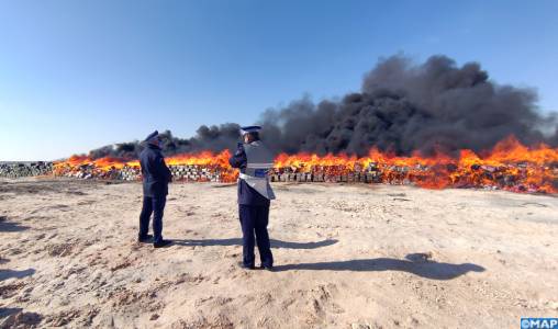 جرى، يوم أمس السبت بضواحي الداخلة، حرق وإتلاف كمية كبيرة من المخدرات، بينها 20.19 طنا من مخدر الشيرا، والمواد المحظورة والمهربة، تقدر قيمتها بأزيد من 220.18 مليون درهم.