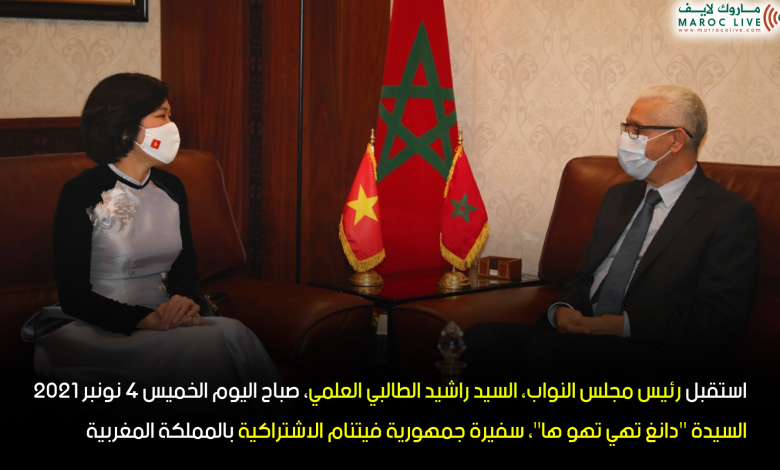استقبل رئيس مجلس النواب، السيد راشيد الطالبي العلمي، صباح اليوم الخميس 4 نونبر 2021، السيدة “دانغ تهي تهو ها”، سفيرة جمهورية فيتنام الاشتراكية المعتمدة لدى المملكة المغربية.