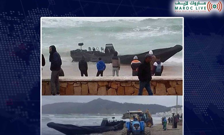البحر يلفظ زورق سريع من نوع “فانطوم” بشاطئ المضيق، يستعمل في تهريب المخدرات
