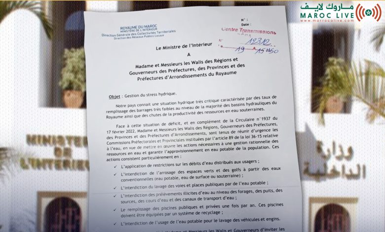 أصدر وزير الداخلية عبد الوافي لفتيت، دورية موجهة إلى ولاة و عمال الاقاليم حول استنزاف المياه.