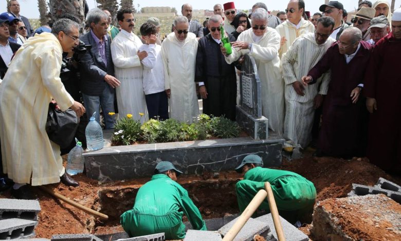 وبعد صلاتي الظهر والجنازة بمسجد الشهداء بالرباط، نقل جثمان الفقيد، الذي وافته المنية أمس السبت عن عمر ناهز 67 عاما بعد معاناة مع المرض، إلى مثواه الأخير بمقبرة الشهداء حيث ووري الثرى.